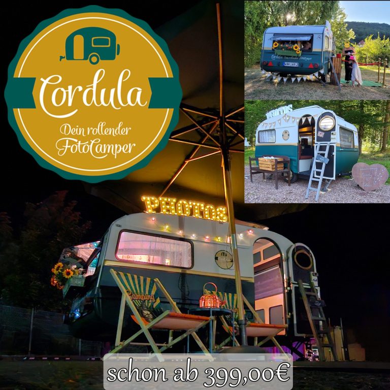 Vergessem Sie Kisten, Kabel und graue Technik. Cordula ist eine mobile Fotobox mit Persönlichkeit. Ein echter Retro-Wohnwagen, vollgepackt mit Charme, Accessoires und jeder Menge Platz für große Auftritte vor der Kamera.