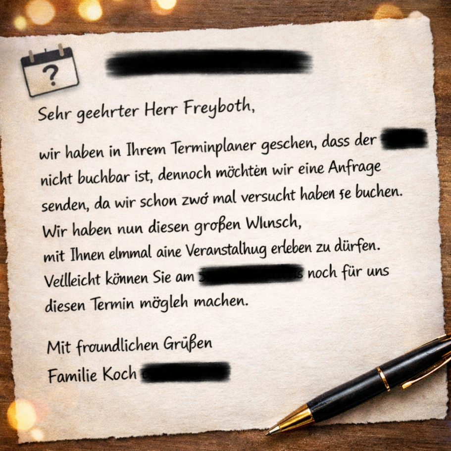 Viele dieser Begegnungen haben Spuren hinterlassen und genau deshalb finden sich in meinem Gästebuch so viele persönliche Worte, Erinnerungen und Rückmeldungen. Sie erzählen davon, wo ich überall unterwegs war und wie diese Abende in Erinnerung geblieben sind.